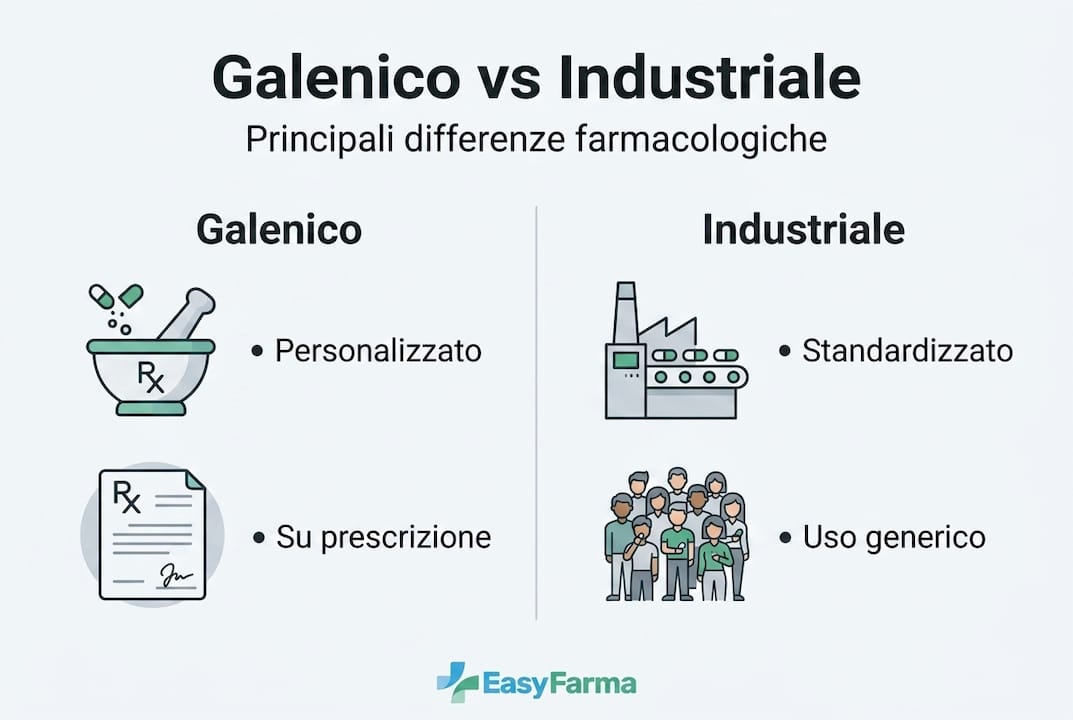 | Aspetto | Prodotto industriale | Preparato galenico |