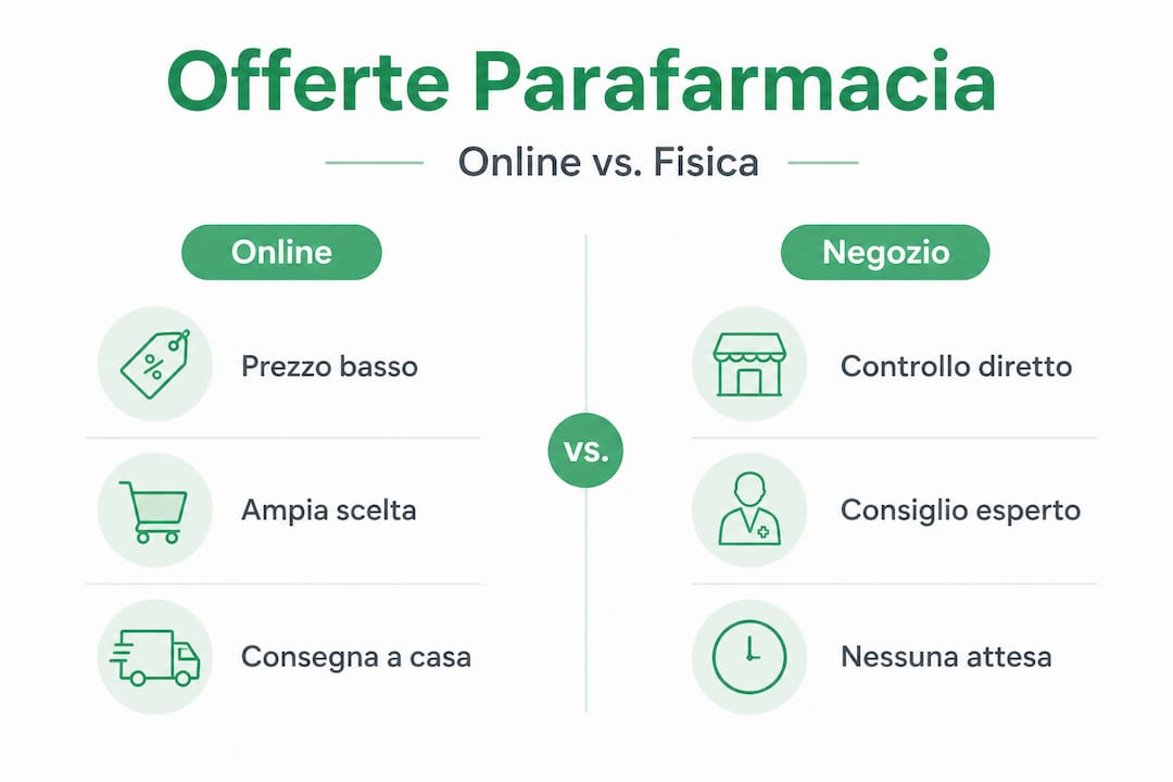 | Parafarmacia online | Spesso più basso | Molto ampia | Alta (acquisto da casa) | Falsi sconti, spedizione lenta |